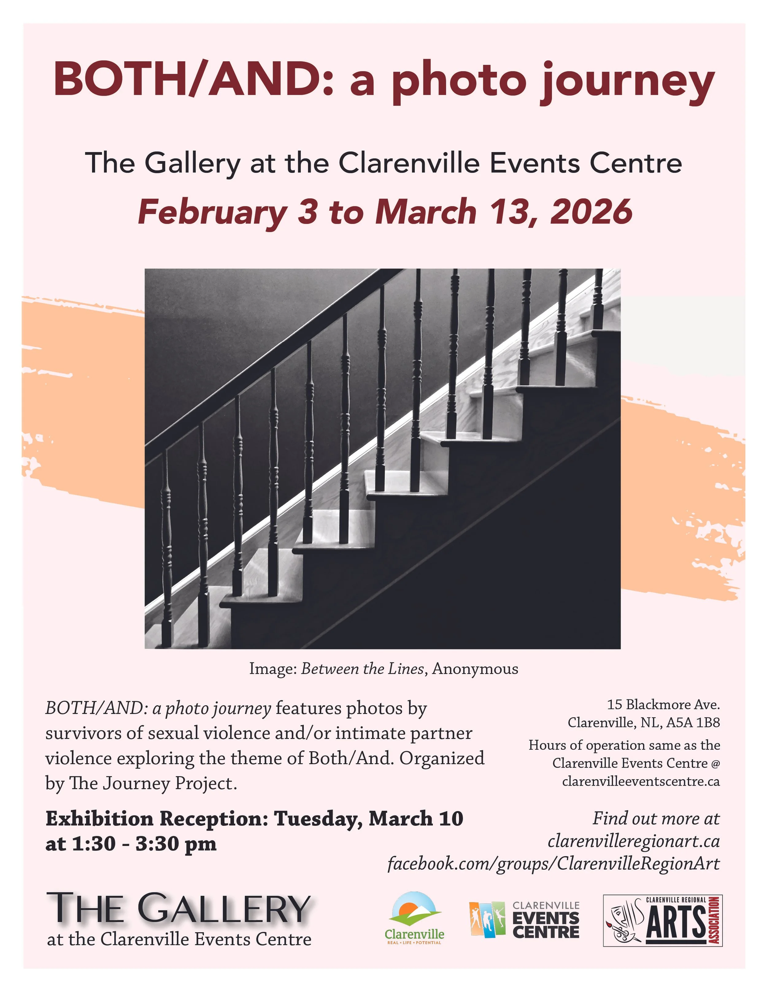 This show features photos by survivors of sexual violence and/or intimate partner violence exploring the theme of Both/And. It is powerful and thought-provoking. CRAA is honoured to be able to bring this exhibition to the Clarenville region, and grateful to The Journey Project for making it available.